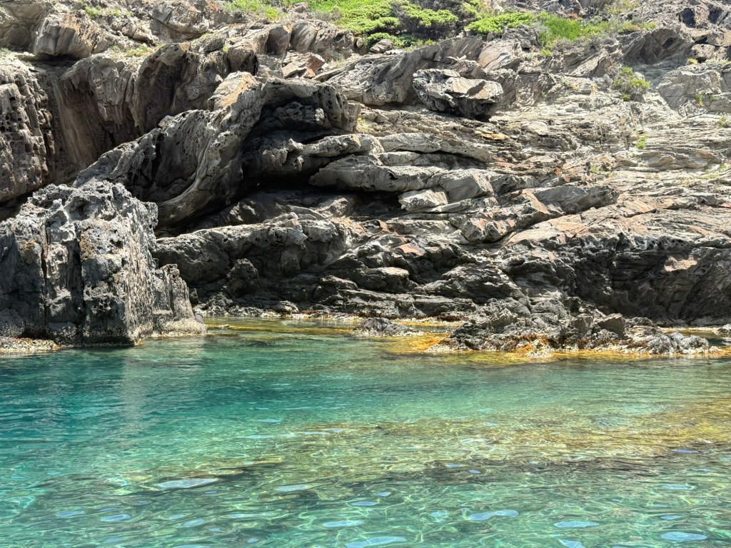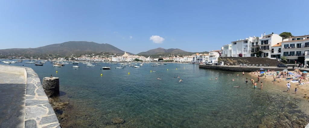J’ai toujours été assez fan de Dalí. Alors pas question de passer à côté de l’opportunité. Aujourd’hui, nous avons visité la maison de Dalí à Cadaqués et demain nous ferons le musée Dalí à Figueres. Nous ne pouvions pas aller à Cadaqués sans faire un saut au Cap de Creus, où débutent les Pyrénées. On s’est trouvé une petite excursion en bateau qui nous y a amenés pour 16 euros chacun, baignade en mer incluse ! Le deal du siècle. L’eau était très froide mais magnifique. Et comme il fait genre 35 degrés, l’eau très froide était la bienvenue !